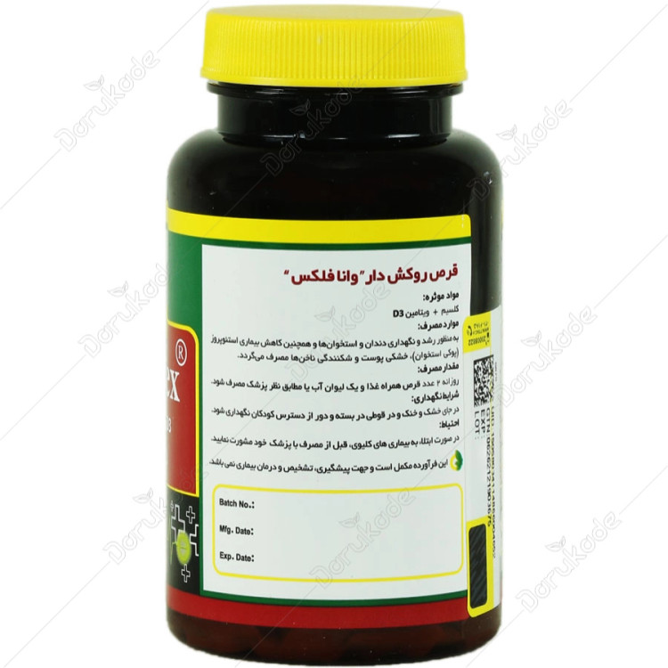 قرص روکش دار وانا فلکس با داشتن دوز مناسبی از کلسیم و ویتامین د3، گزینهای مناسب برای افرادی است که میخواهند از پوکی استخوان پیشگیری کنند. هر قرص حاوی 500 میلی گرم کلسیم و 5 میکروگرم ویتامین د3 است که به جذب کلسیم کمک می کند. این مکمل با تقویت استخوانها، حفظ سلامت عمومی بدن و سلامت دندانها از پوکی استخوان جلوگیری میکند. کاندیدای اصلی استفاده از قرص Vana flex، زنان یائسه و سالمندان هستند. مصرف منظم قرص کلسیم وانا فلکس به بهبود کیفیت زندگی و جلوگیری از مشکلات مرتبط با کمبود کلسیم و ویتامین د کمک میکند.
