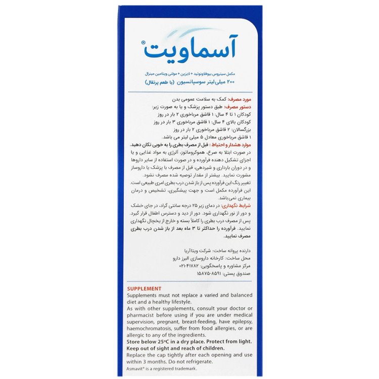 شربت آسماویت ویتابیوتیکس ۲۰۰ میلی لیتر