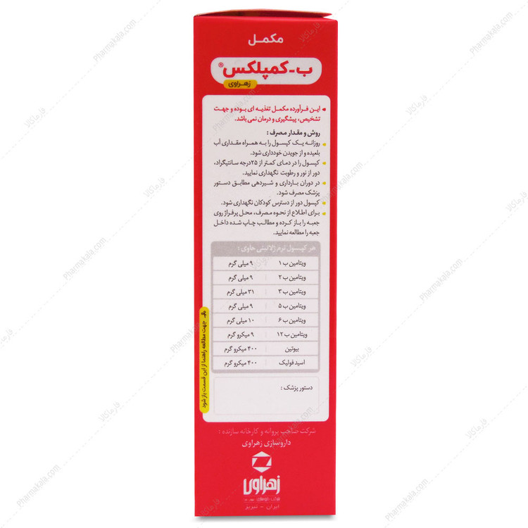 ب کمپلکس زهراوی، متعلق به شرکت داروسازی زهراوی، با فرموله کردن تمامی ویتامین های گروه B، به منظور تامین نیاز به این ویتامین ها، ارتقای سلامت عمومی بدن، بهبود متابولیسم و افزایش سطح انرژی روزانه، عملکرد بهتر سیستم قلبی و عصبی، خون سازی و... به بازار آمده است.