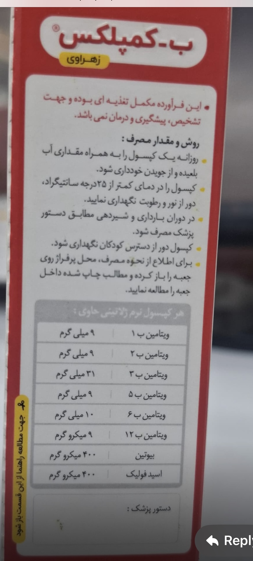 ترکیبات : ب1، ب2، ب3، ب5، ب6، ب12، فولیک اسید و بیوتین