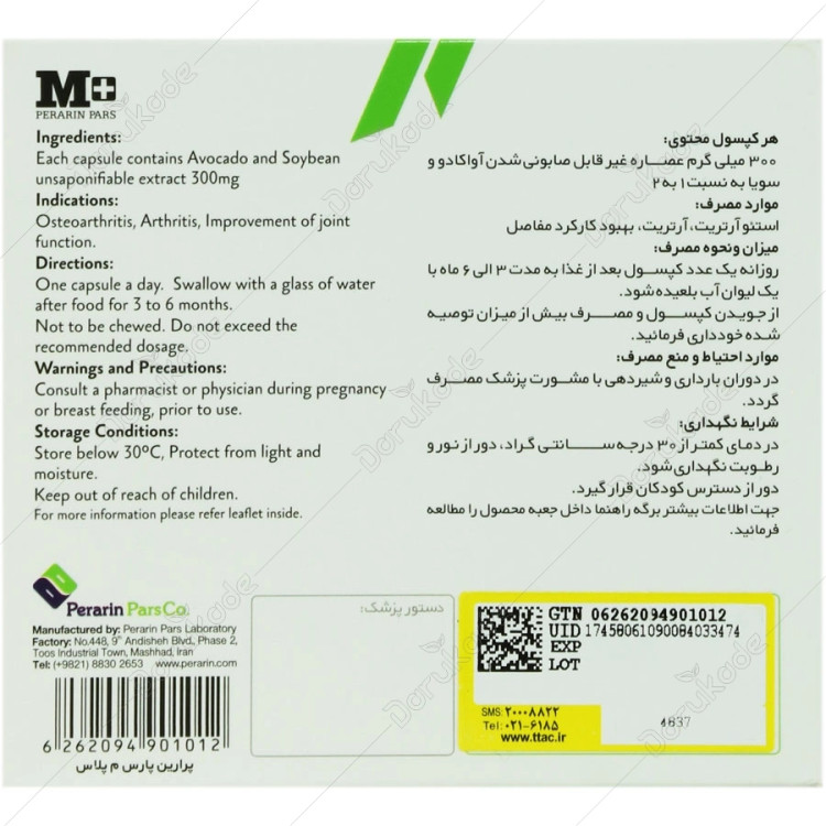 فرآورده گیاهی حاوی 300 میلیگرم عصاره آووکادو و سویا با نسبت 1 به 2