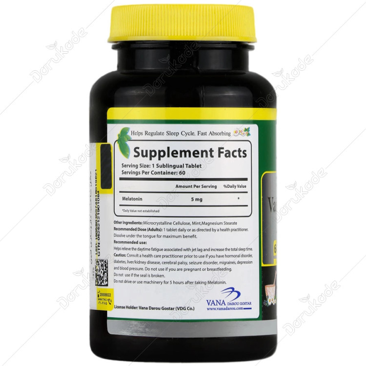 حاوی 5 میلی گرم ملاتونین در هر قرص زیر زبانی