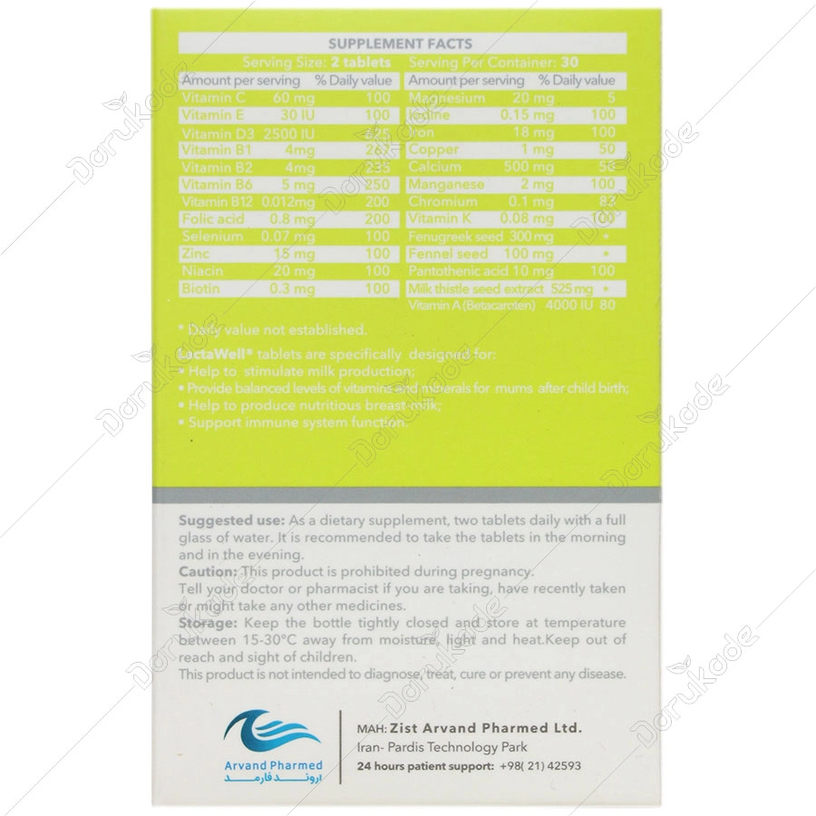 به منظور نتیجه بهتر روزانه 2 قرص شیر افزا لاکتاول (صبح و عصر) به همراه یک لیوان آب توسط مادر مصرف شود.