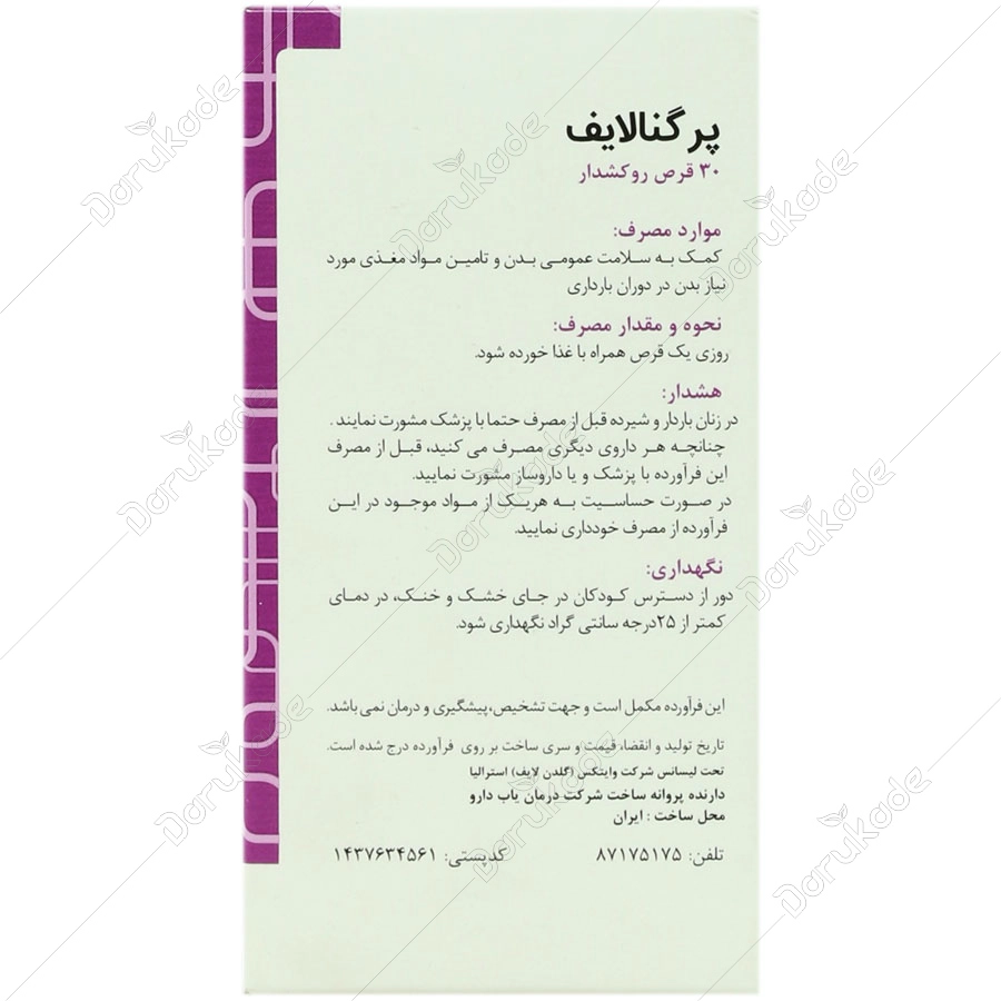 قرص پرگنالایف با تامین مقادیر کافی از انواع متنوعی از ریزمغذیهای لازم برای مادر باردار و جنین از با کیفیت ترین مکملهای بارداری موجود در بازار است که تحت برند شرکت گلدن لایف استرالیا و توسط شرکت درمان یاب دارو در قالب قوطی حاوی سی عدد قرص تولید و بسته بندی میشود.