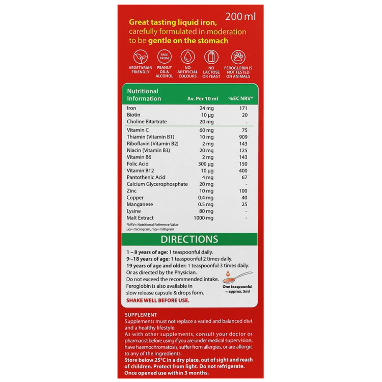 شربت فروگلوبین پلاس، حاوی 1000میلیگرم عصاره مالت در هر 10میلیلیتر است. به دلیل وجود عصاره مالت در این محصول، شربت فروگلوبین پلاس فاقد عارضه یبوست است. این محصول قابل استفاده در کودکان بالای 1 سال، بزرگسالان، زنان و مردان ورزشکار و زنان در دوران قاعدگی است.